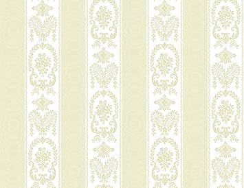 Aida Damask With Stripe Wallpaper In Gold And White Design By York