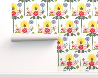 Swedish Folk Art Pre Pasted Removable Wallpaper 9ft X 2ft Roll By Spoonflower