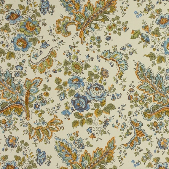 Vintage Original Swedish Wallpaper Blue Bla Ang Drom Blummig Etsy