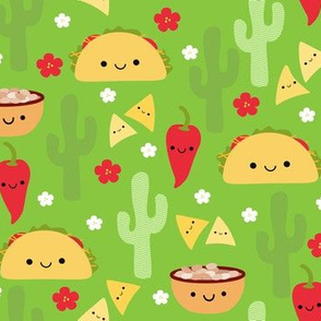 Large Happy Tacos And Friends Green Spoonflower