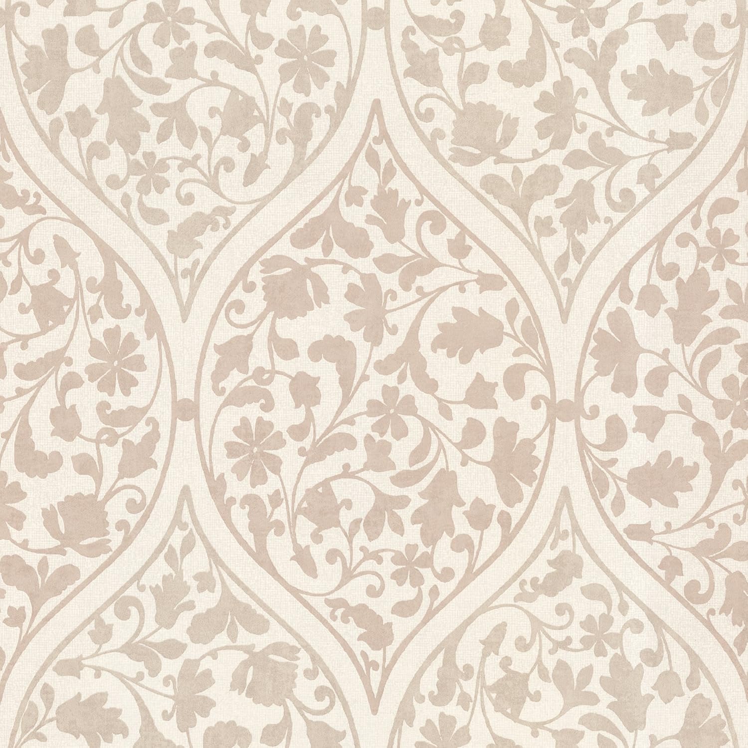 Beacon House 450 67385 Adelaide Taupe Ogee Floral Wallpaper Taupe