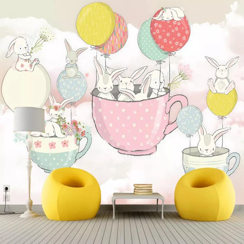 3d Photo Cartoon Custom Wallpapers Small Rabbit Wall Hand Drawn