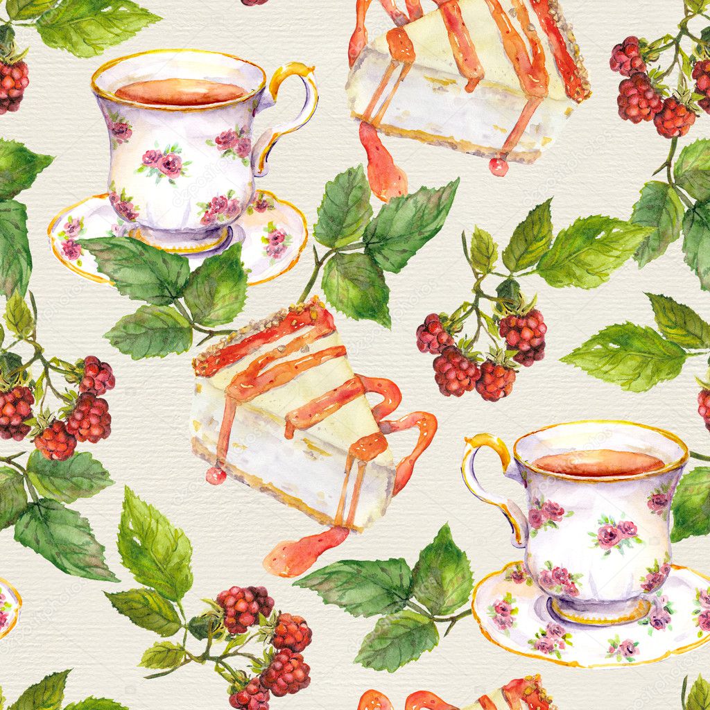 Tea Cup Wall Paper Seamless Watercolor Wallpaper Tea Cup