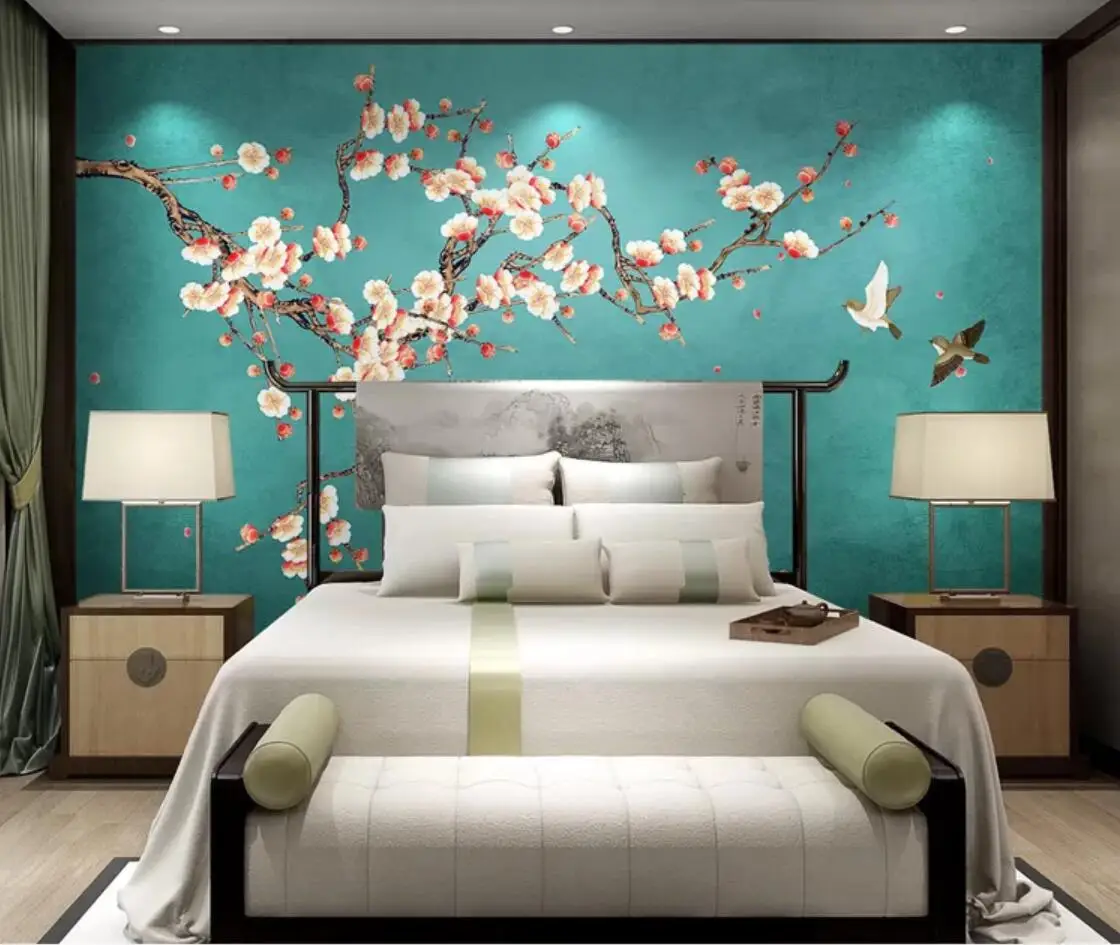 Plum Blossom Flower Wallpaper Blue Background Wall Mural