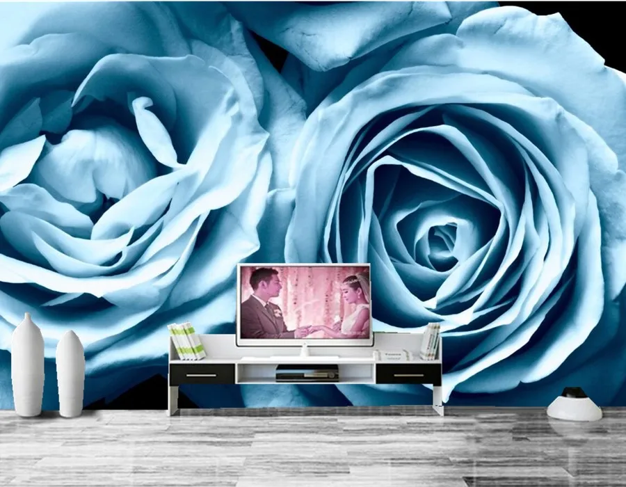 Custom Roses Light Blue Flowers Wallpaper Hotel Coffee Shop Living