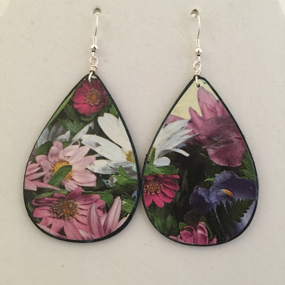 Amazon Com Colorful Floral Wallpaper Teardrop Earrings Handmade