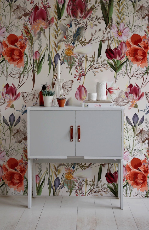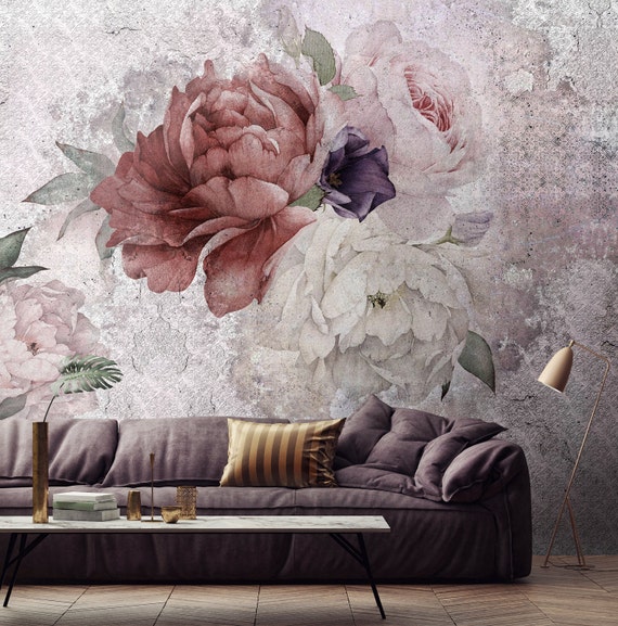 Floral Wallpaper Temporary Wallpaper Loft Designremovable Etsy