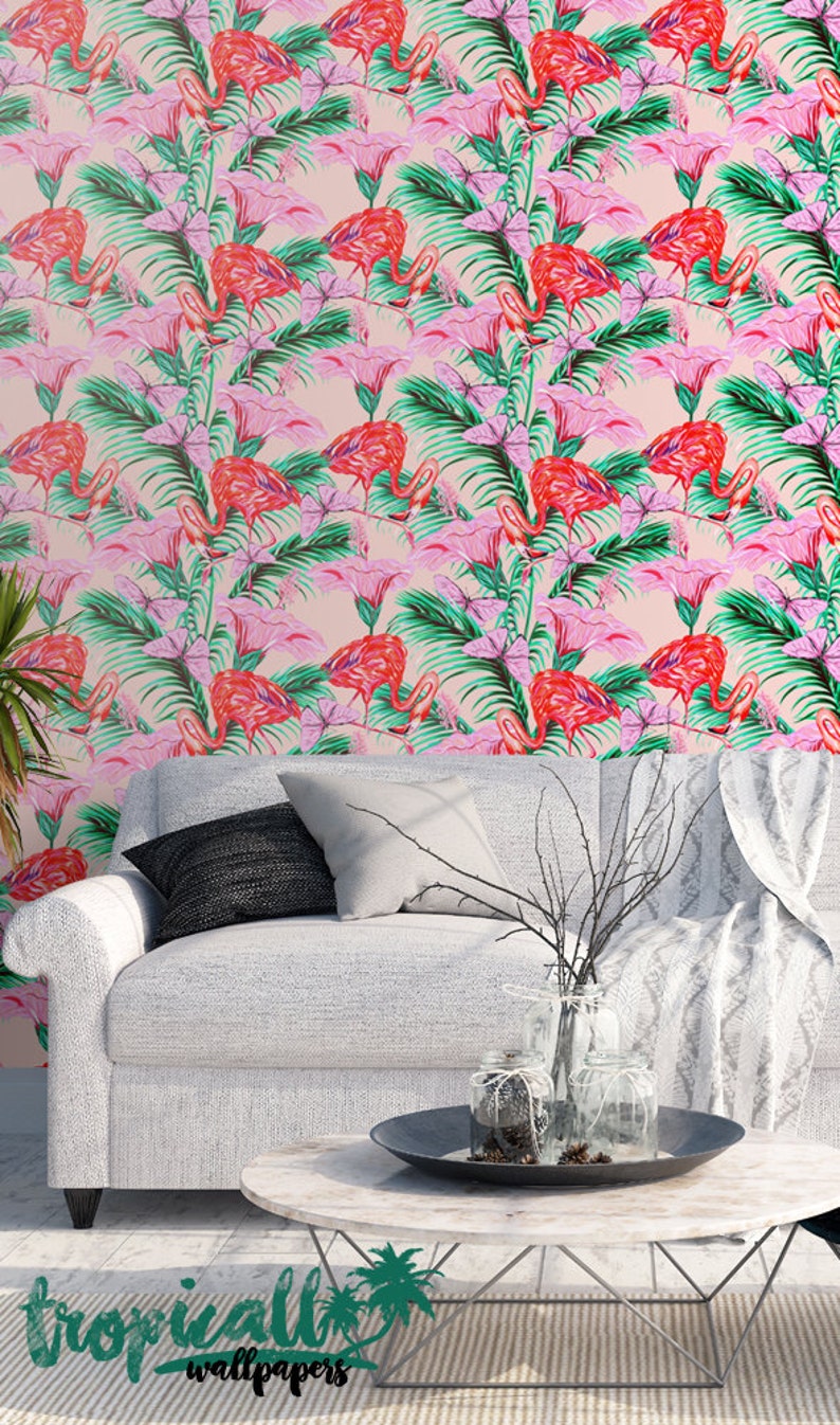 Flamingo Wallpaper Temporary Peel And Stick Flamingo Wall Art