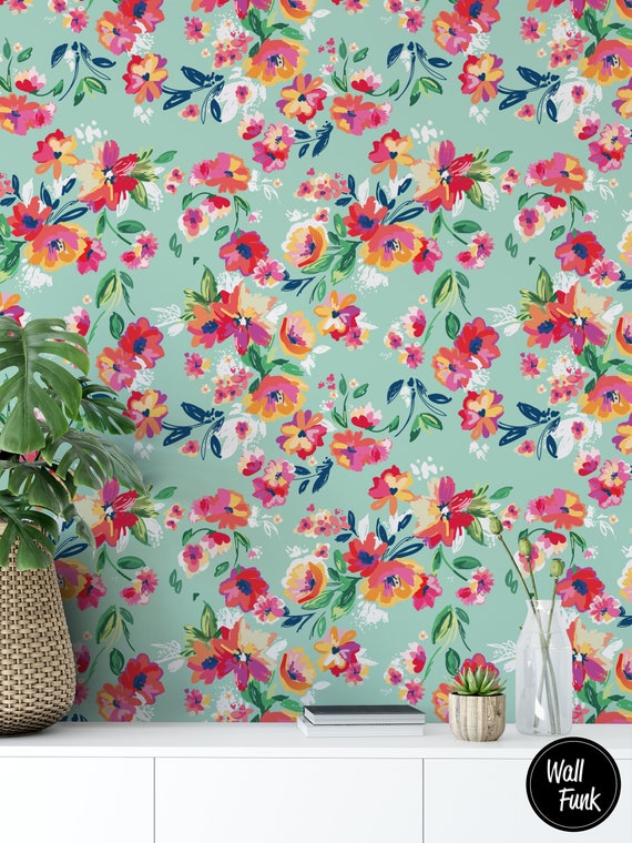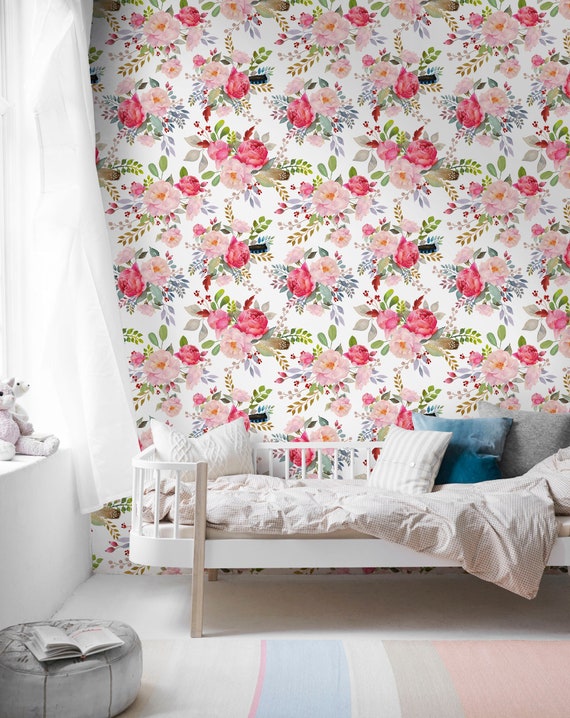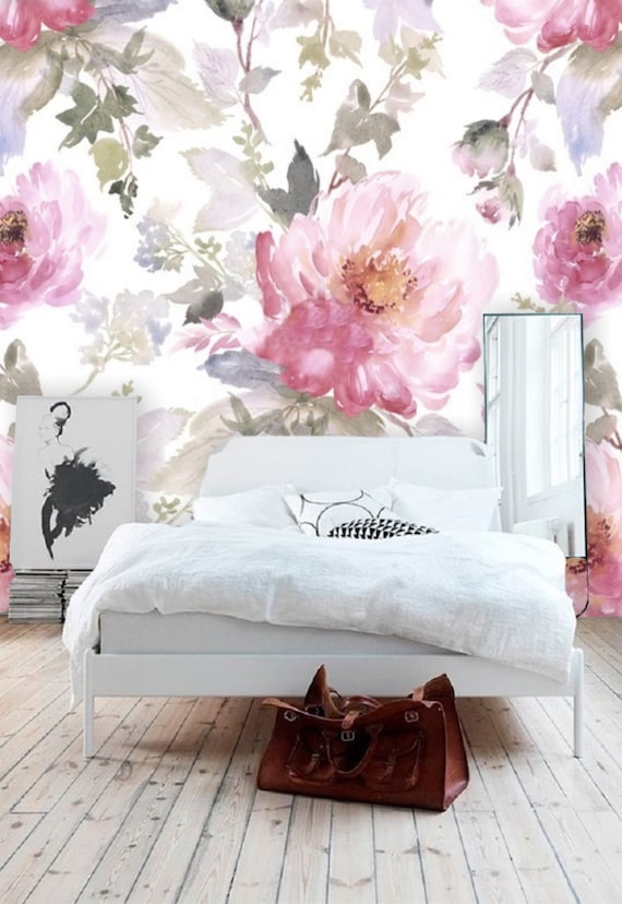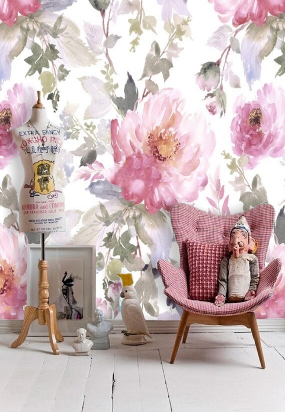 Watercolor Floral Wallpaper Removable Wall Decor Temporary Etsy
