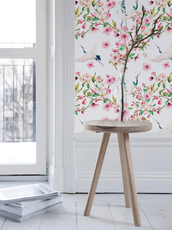Chinoiserie Wallpaper Temporary Wallpaper Floral Wallpaper Etsy