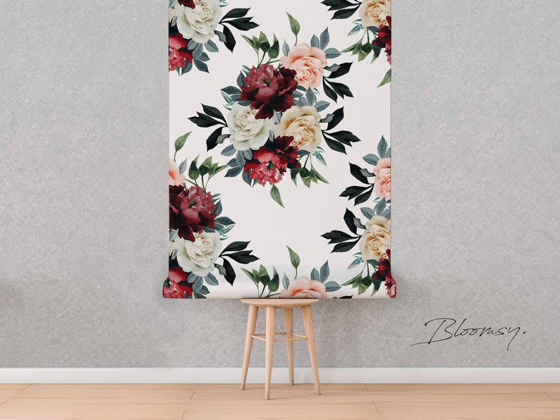 Removable Floral Wallpaper Water Activated Temporary Stick On Etsy