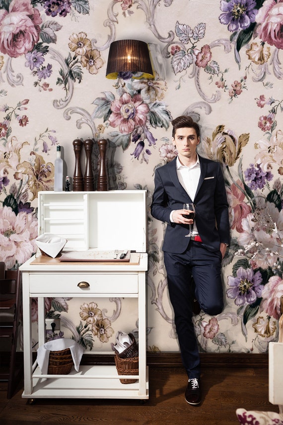 Pro Vance Vintage Wallpaper Temporary Wallpaper Floral Etsy