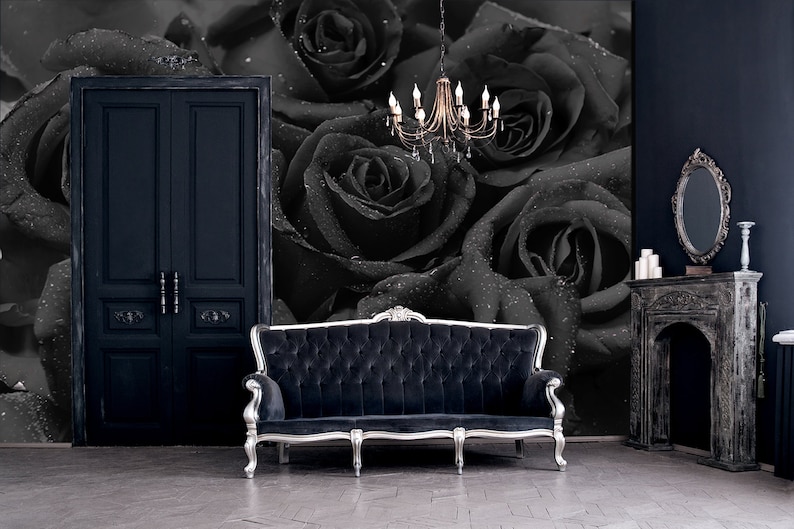 Dark Roses Wallpaper Temporary Removable Wallpaper Self Adhesive