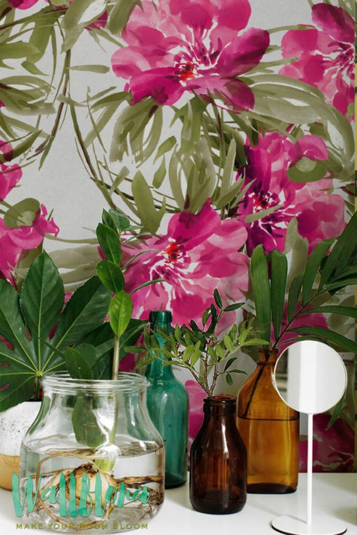 Watercolour Peonies Temporary Wallpaper Wallpaper Removable Wall