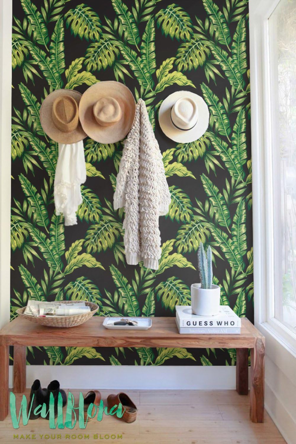 Monstera And Cyca Leaves Wallpaper Removable Wallpaper Self