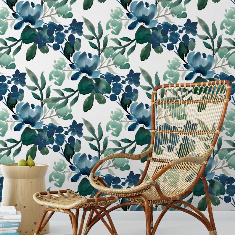 Self Adhesive Removable Wallpaper Watercolor Floral Blooming