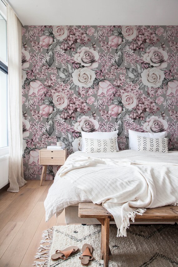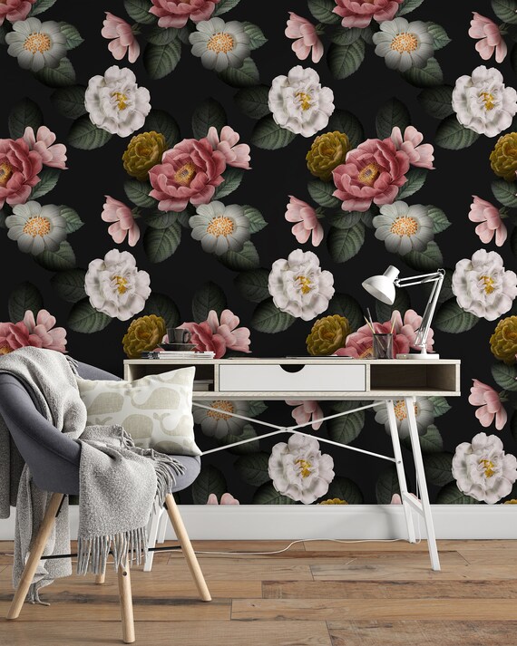 Moody Flower Wallpaper Temporary Wallpaper Removable Etsy