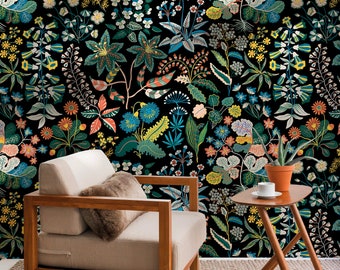 Temporary Wallpaper Floral Wall Mural Removable Wallpaper Etsy