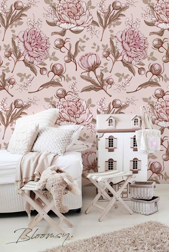 Removable Wallpaper Pink Peonies Wallpaper Floral Etsy