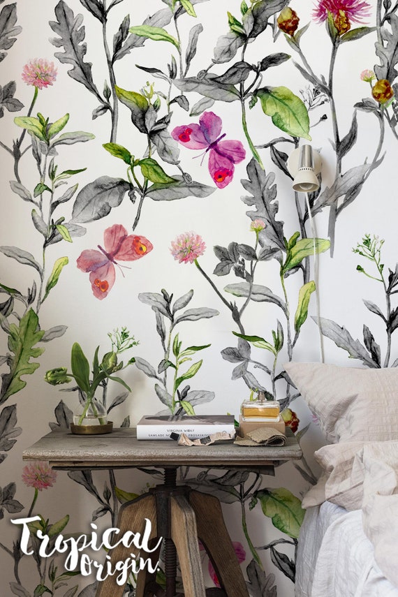 Painted Flowers Removable Wallpaper Floral Self Adhesive Etsy