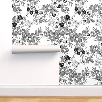 Spoonflower Pre Pasted Removable Wallpaper Black And White Floral