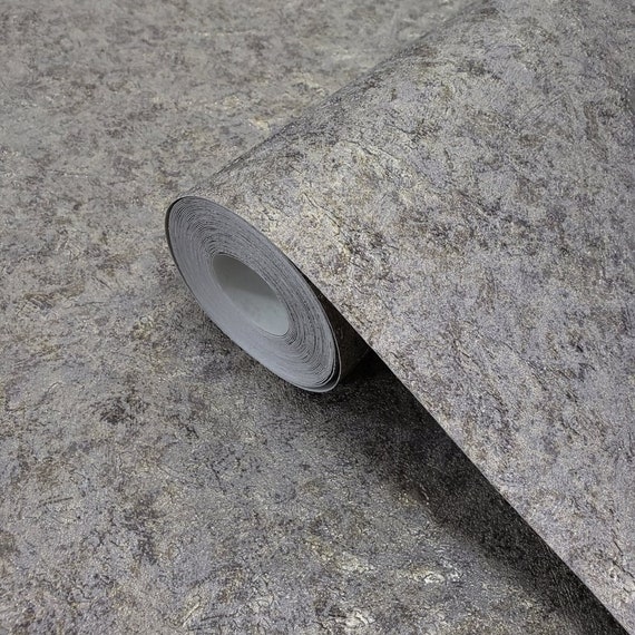 Modern Wallpaper Luxury Plain Textured Gray Gold Charcoal Etsy