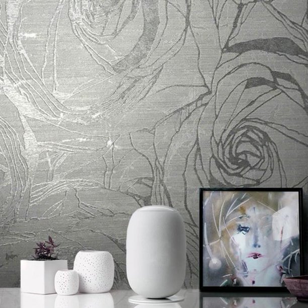 Embossed Wallpaper Gray Silver Gold Metallic Textured Floral