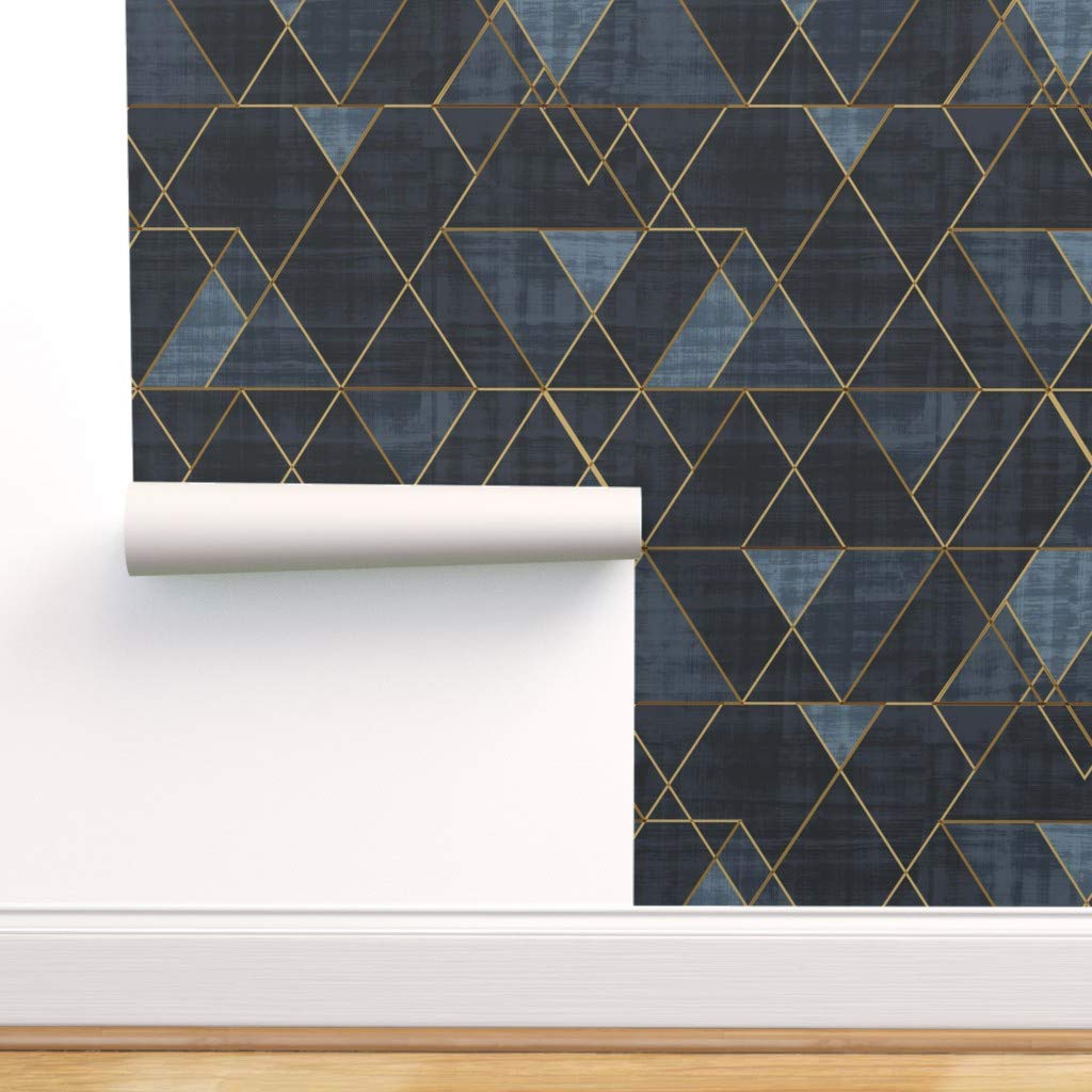 Removable Water Activated Wallpaper Navy Blue Texture Geometric