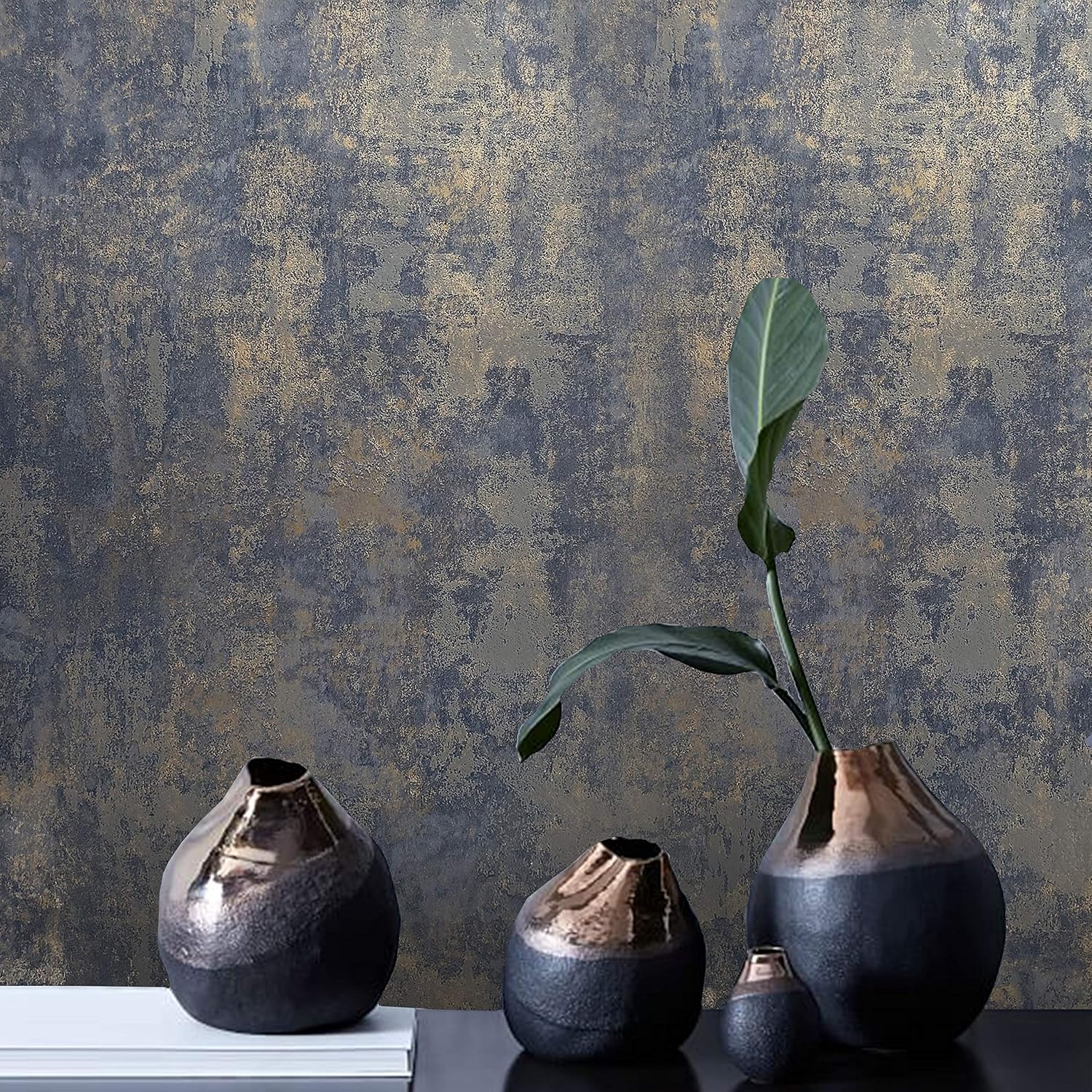 Modern Unique Industrial Look Wallpaper Rustic Navy Blue Gray Gold