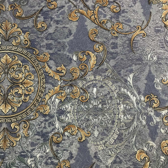 Damask Wallpaper Navy Blue Gold Metallic Shimmer Textured Arthouse