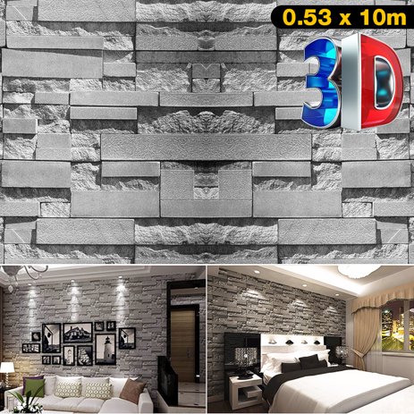 5547 10 Wallpaper Textured Grey Modern Faux Realistic Brick Stone