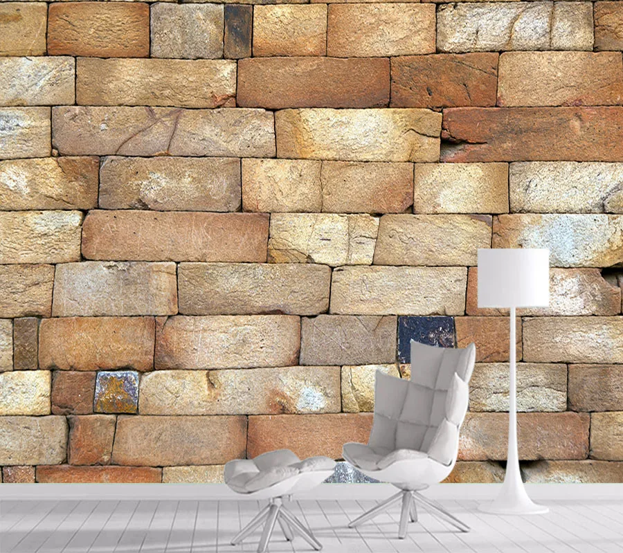 Large Beige Stone Brick Texture Wallpaper Wall Mural