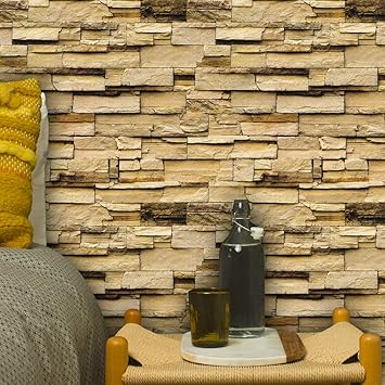 3d Brick Stone Wallpaper Textured Waterproof Livingroom Kitchen 20 8in X 32 8ft Vopie Country Stone Wallpaper Brick Wallpaper Stone Texture