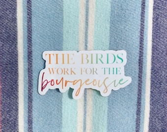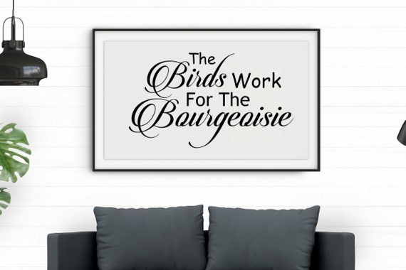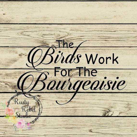 The birds work for the bourgeoisie. 4 8 out of 5 stars 10. The birds work for the bourgeoise is a satirical conspiracy theory copypasta related to birds aren t real that states all of the birds died in 1986 due to reagan killing them and replacing them with spies that are now watching us.