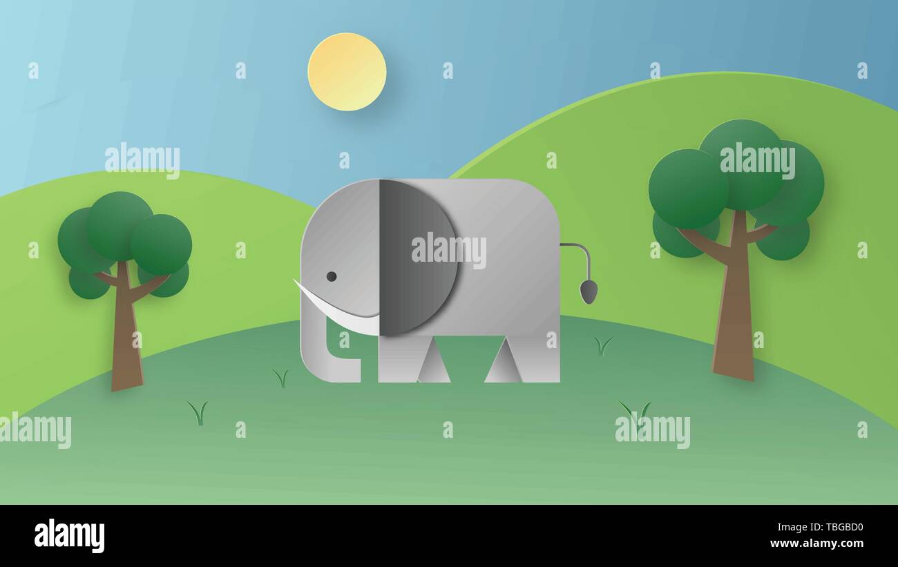 Paper Art Of Wild Elephant In The Forest Digital Craft And