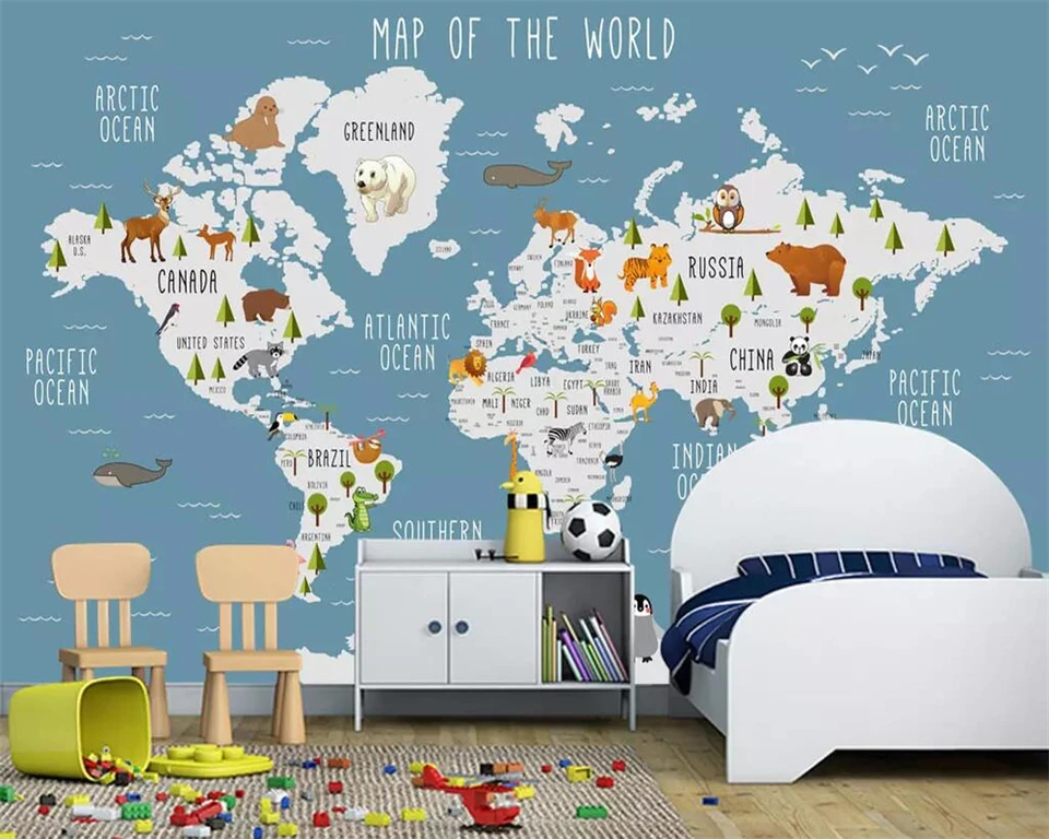 Beibehang Wallpaper Photo Cartoon World Map Children S Room