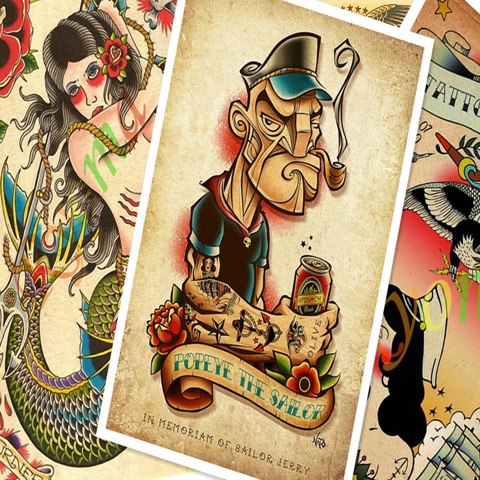 Hd Tattoos Pattern Nostalgic Vintage Kraft Paper Poster Wall