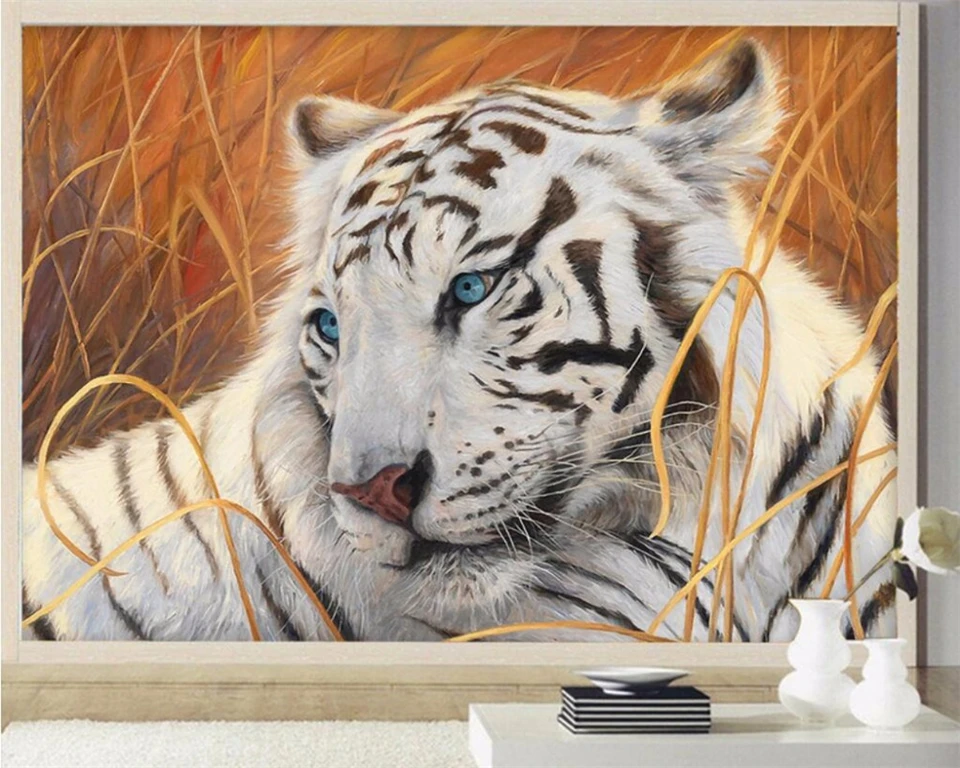 Beibehang 3d Wallpaper Custom Tiger Painting Wallpaper White Tiger Background Living Room Bedroom Home Decor 3d Wallpaper Wallpapers Aliexpress