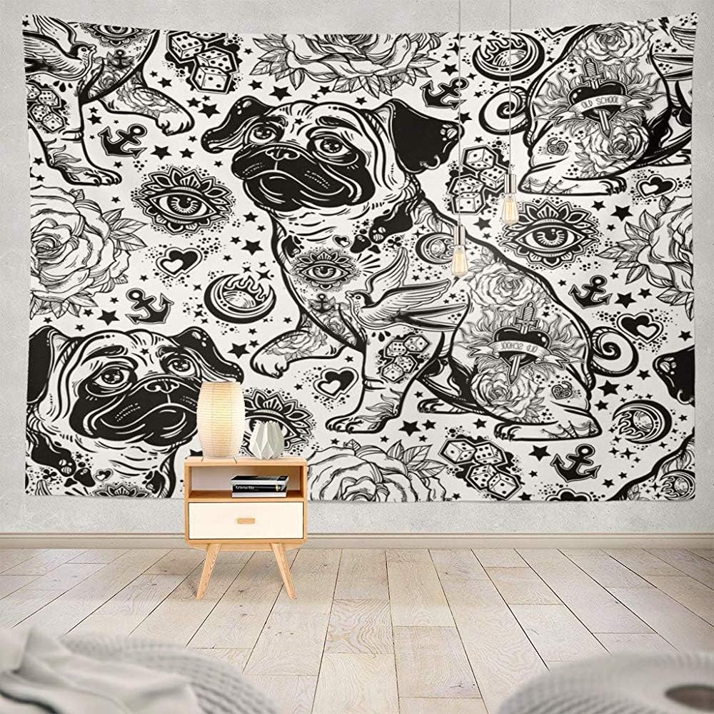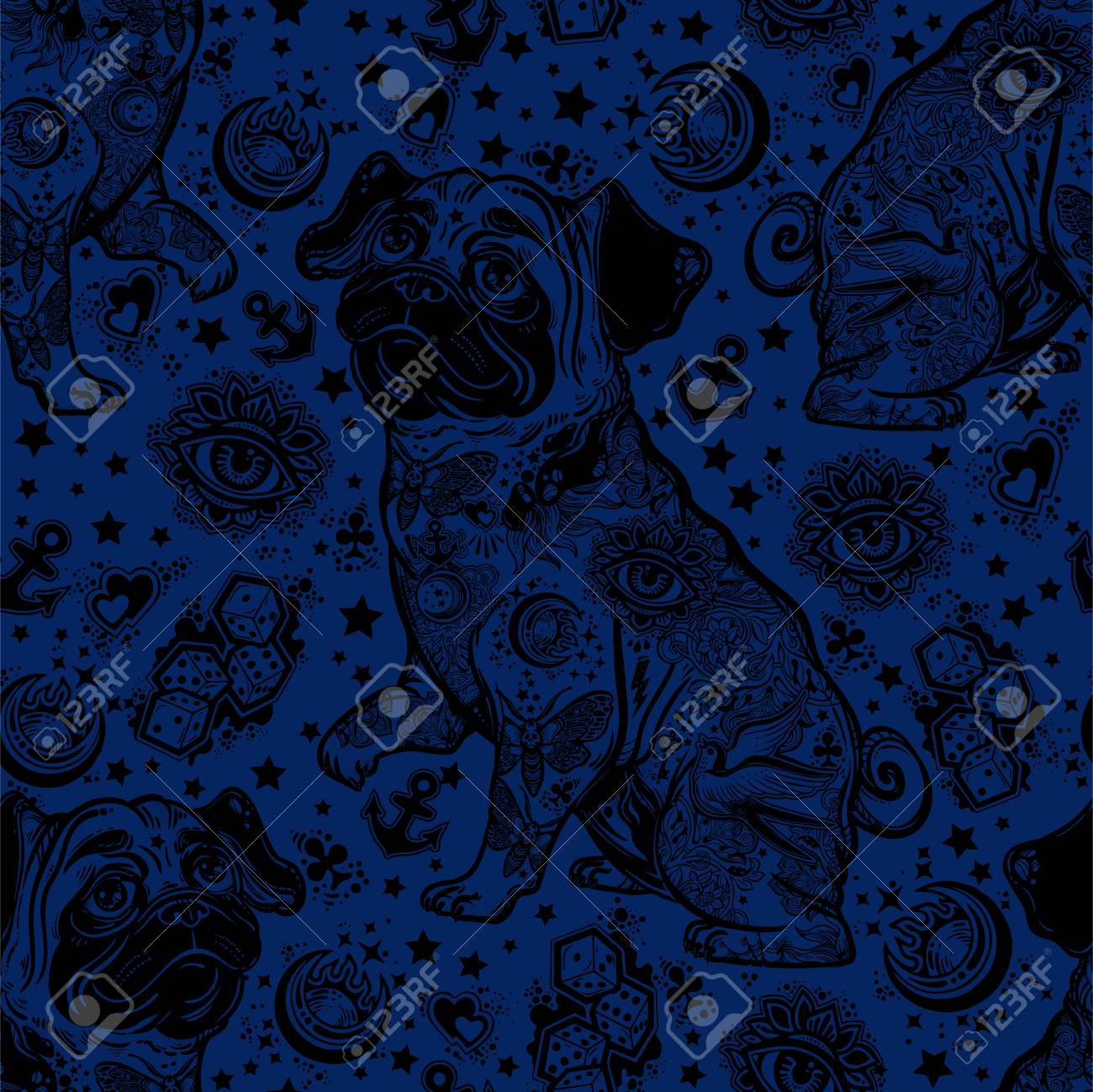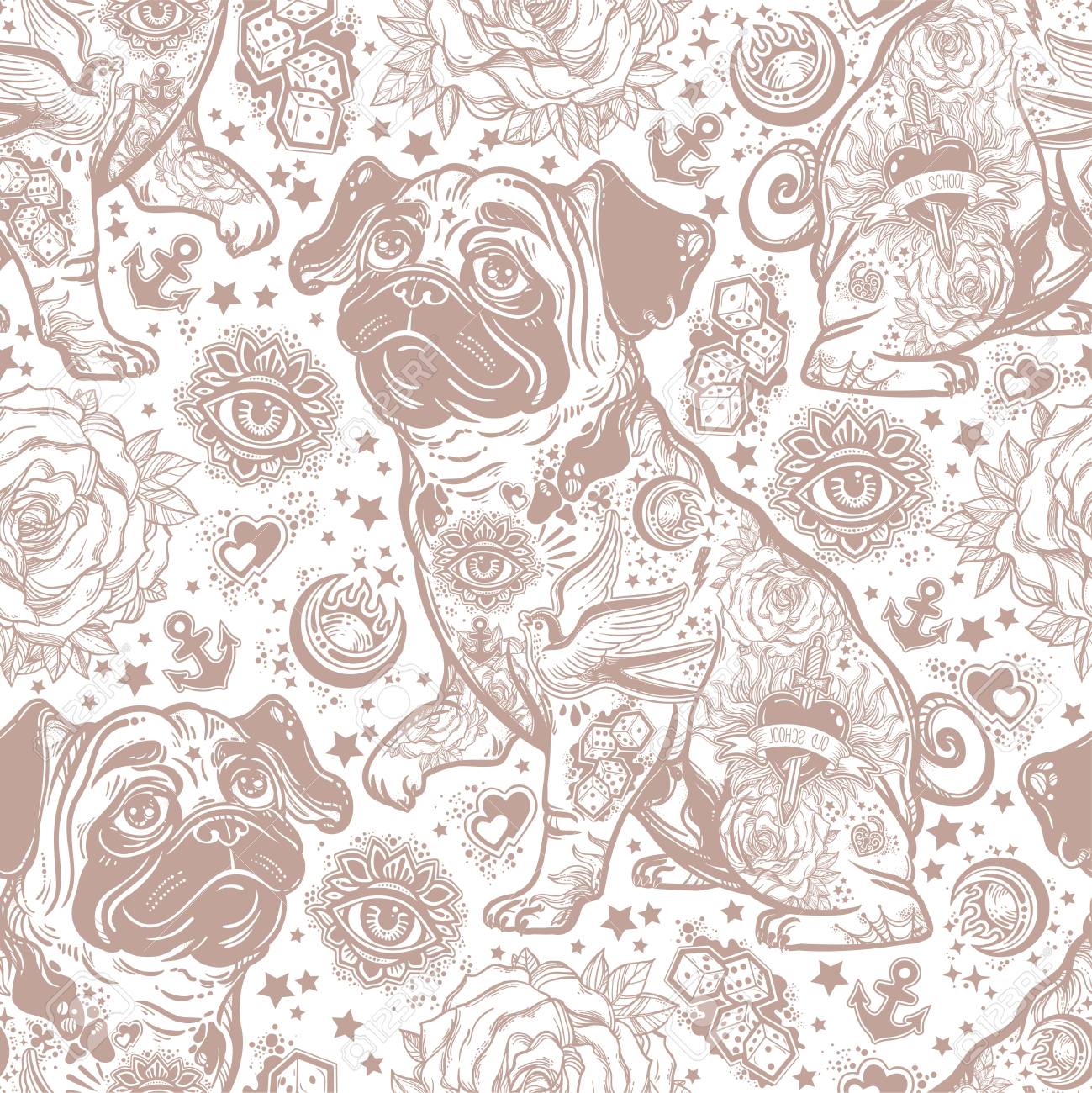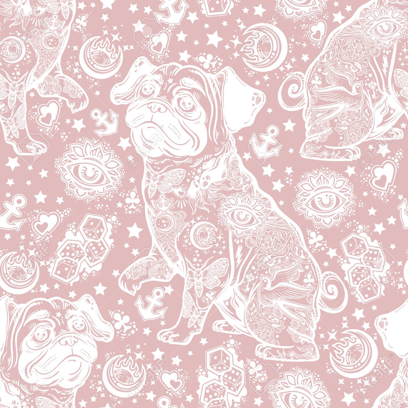 Vintage Style Traditional Tattoo Flash Bulldog Or Pug Dog Seamless