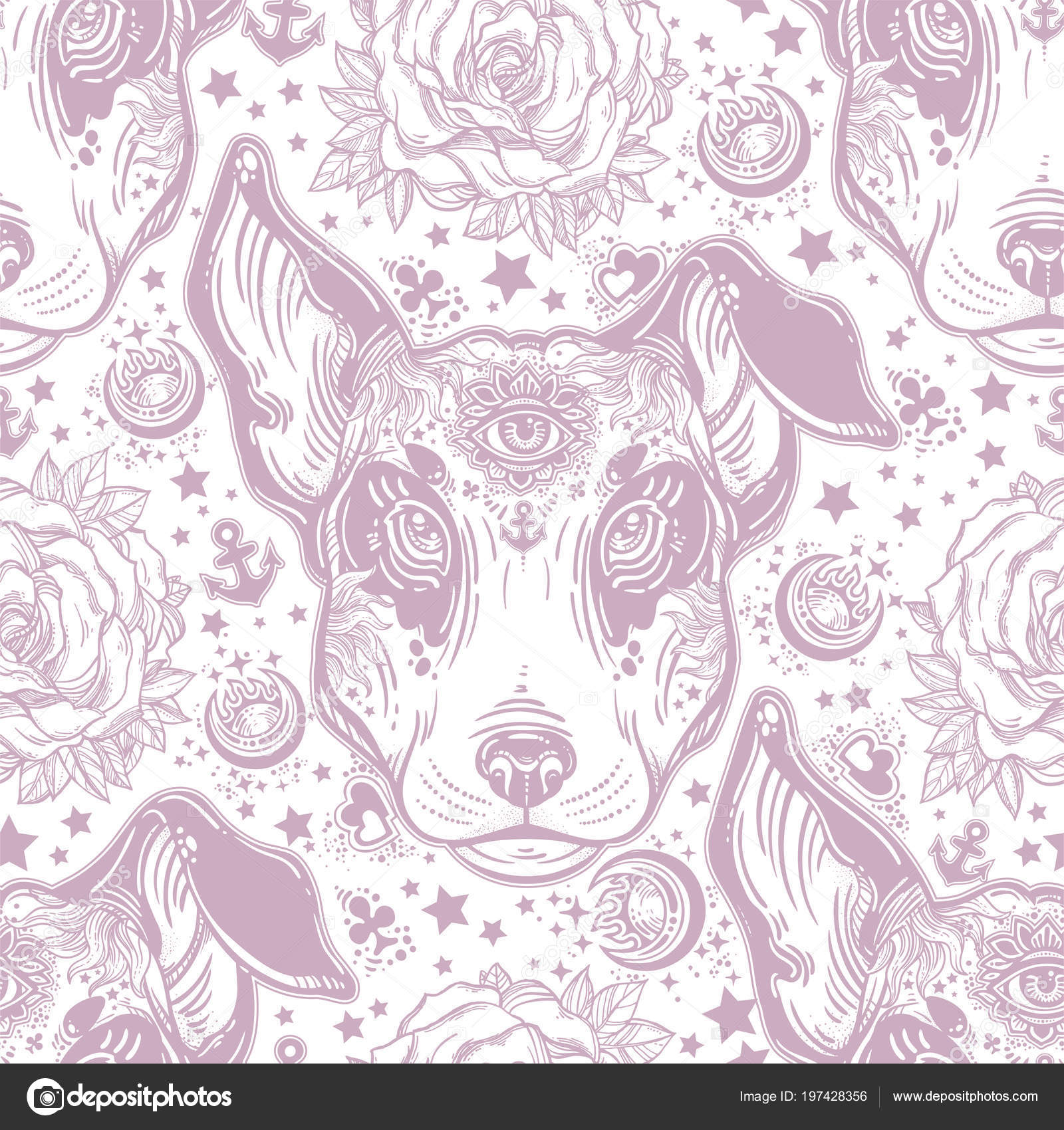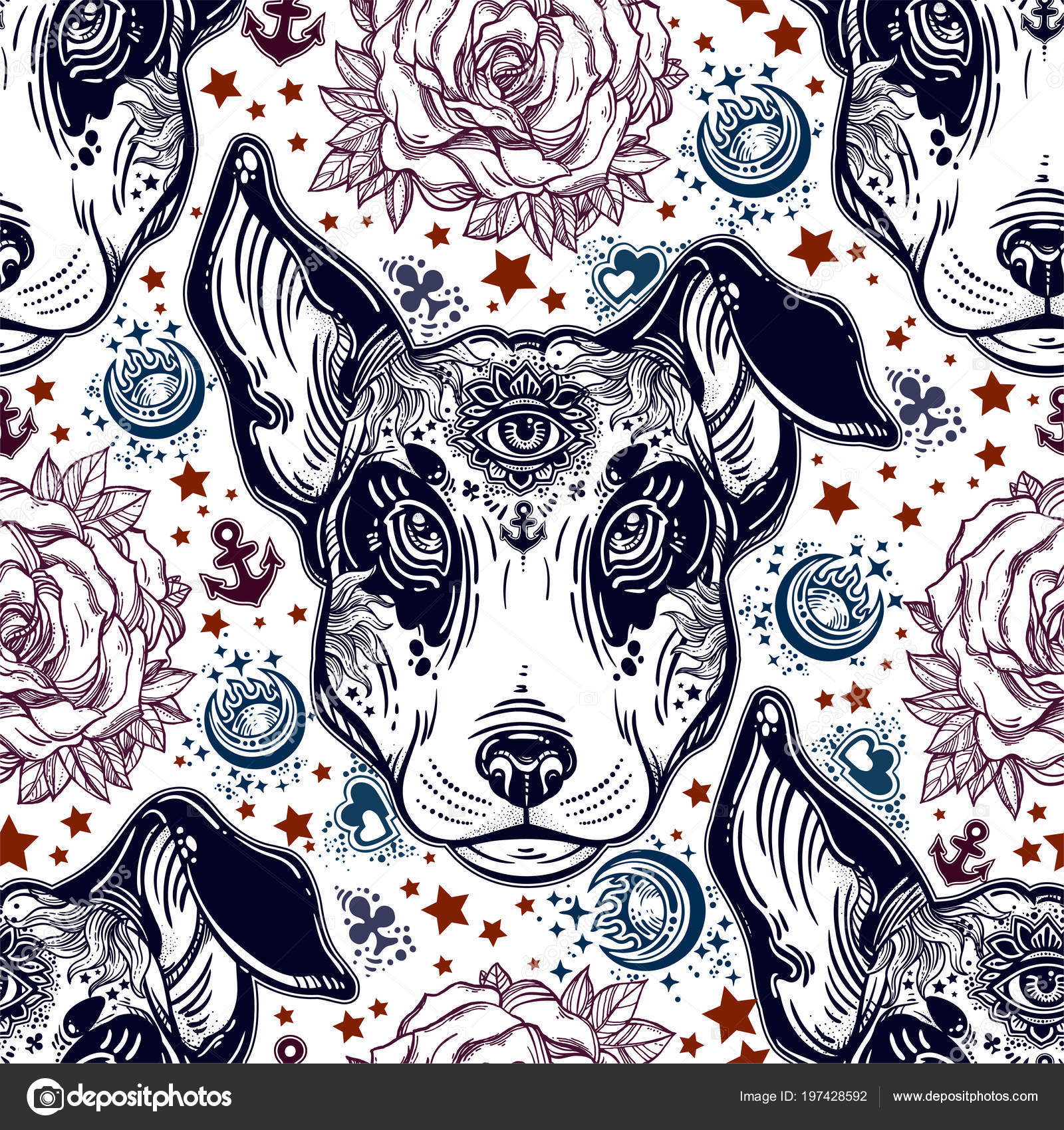 Vintage Style Traditional Tattoo Flash Terrier Dog Seamless Doodle