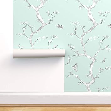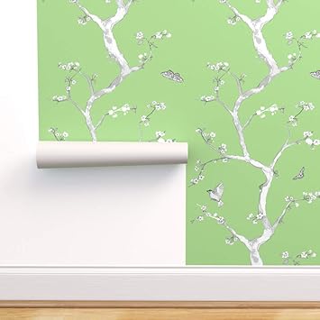 Spoonflower Pre Pasted Removable Wallpaper Chinoiserie Tree Bird