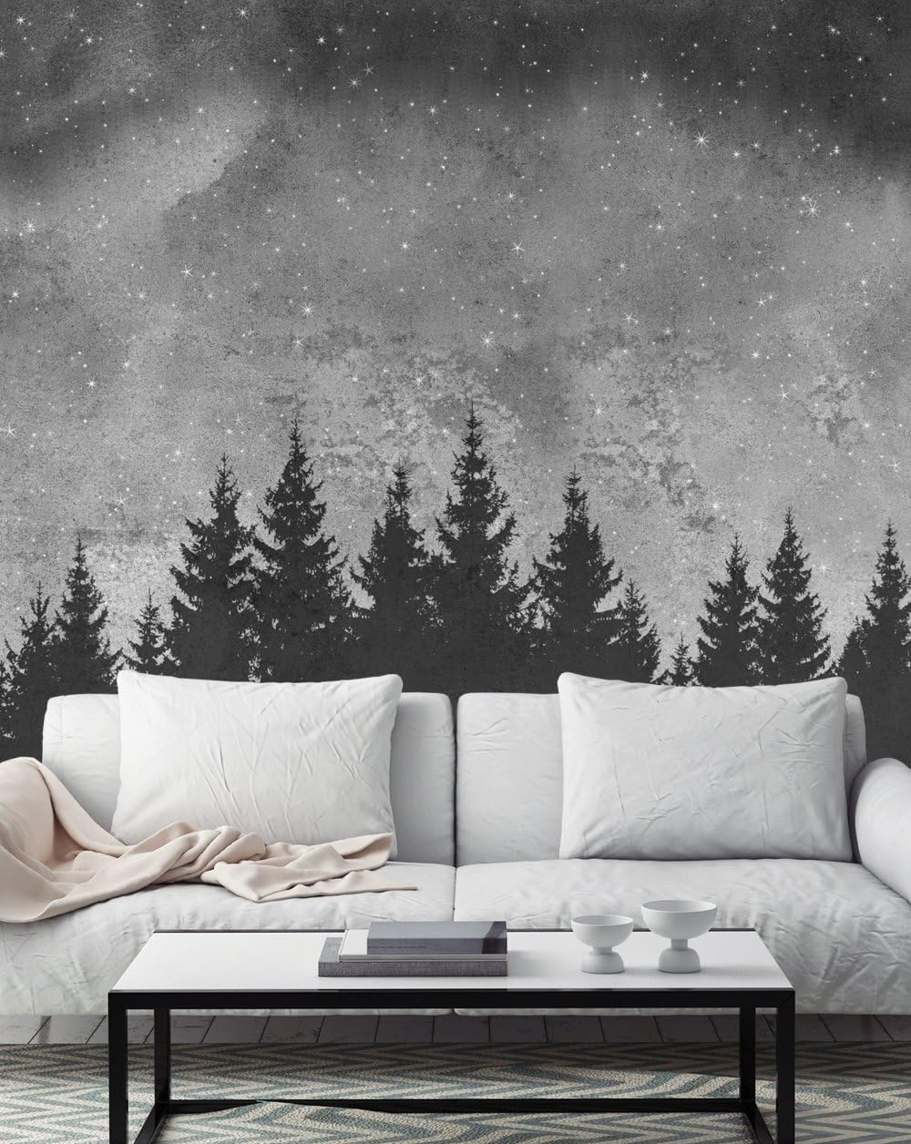 Forest Trees Night Scene Mural Wall Art Wallpaper Black And
