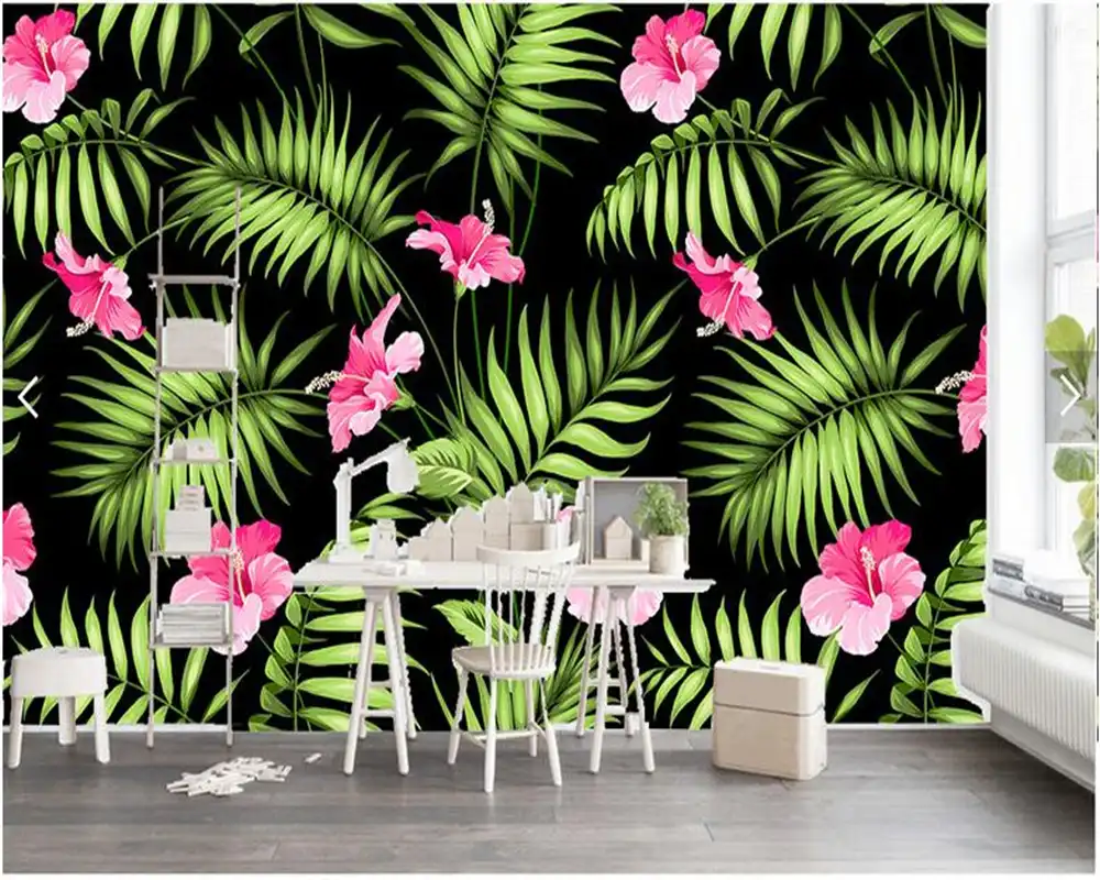 Custom 3d Wallpaper Mural Flowers Tropical Flower Green Leaves