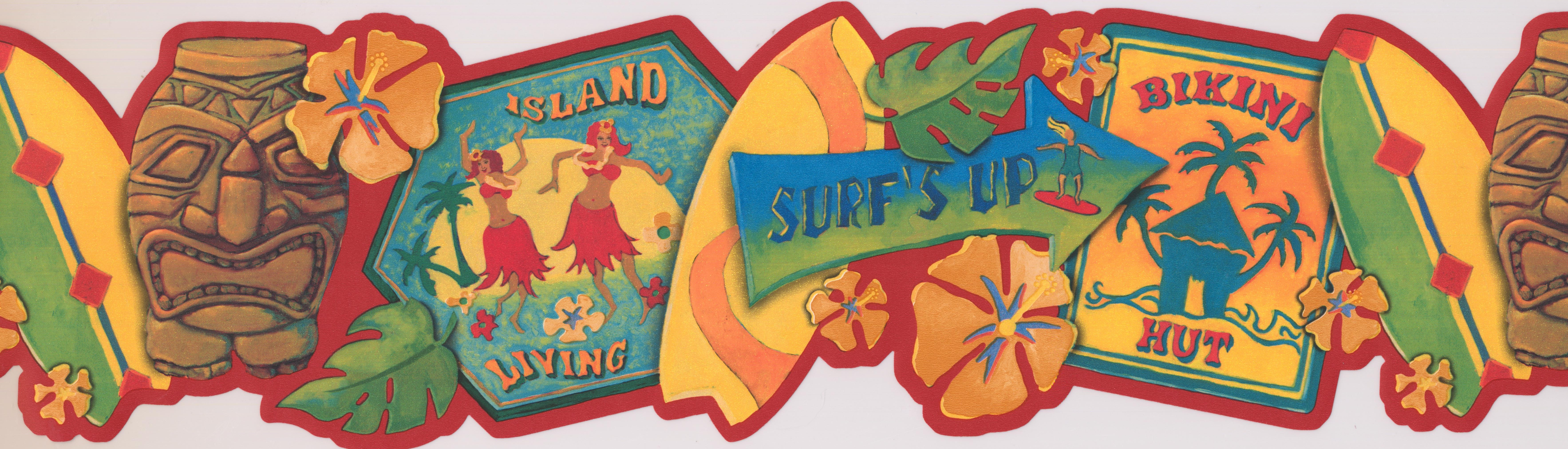 Wallpaper Border Tropical Beach Island Living Surf S Up Bikini