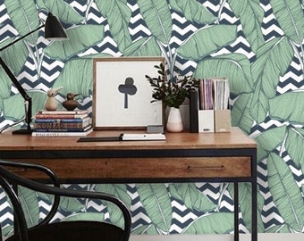 Tropical Wallpaper Green Banana Leaf Wallpaper Wall Mural Etsy
