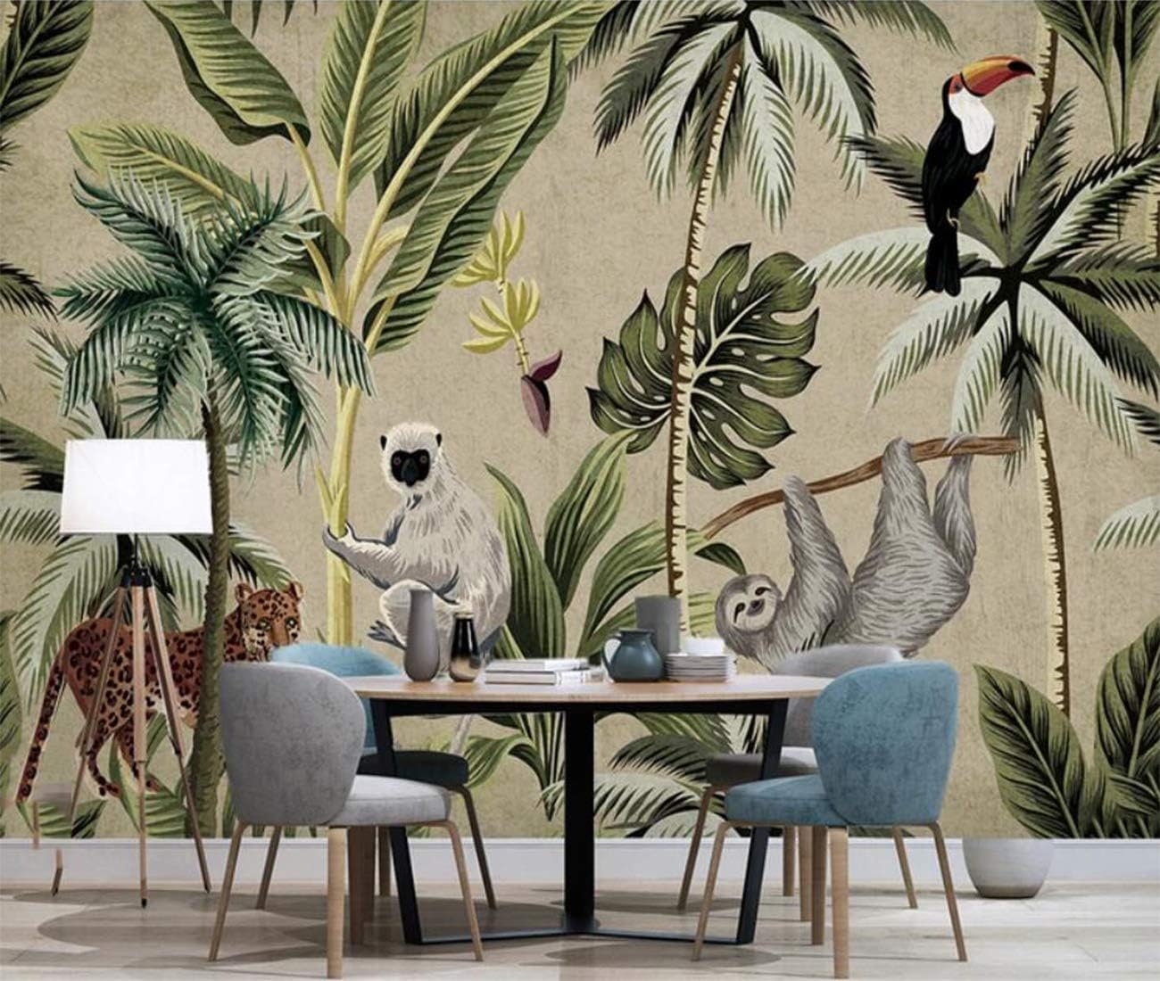 Custom Southeast Asia Monkey Tropical Wallpaper Mural Banana Leaf