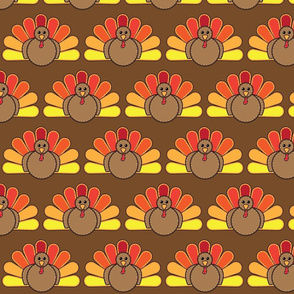 Cute Turkeys And Maple Leaves On Brown Background Vector Cartoon