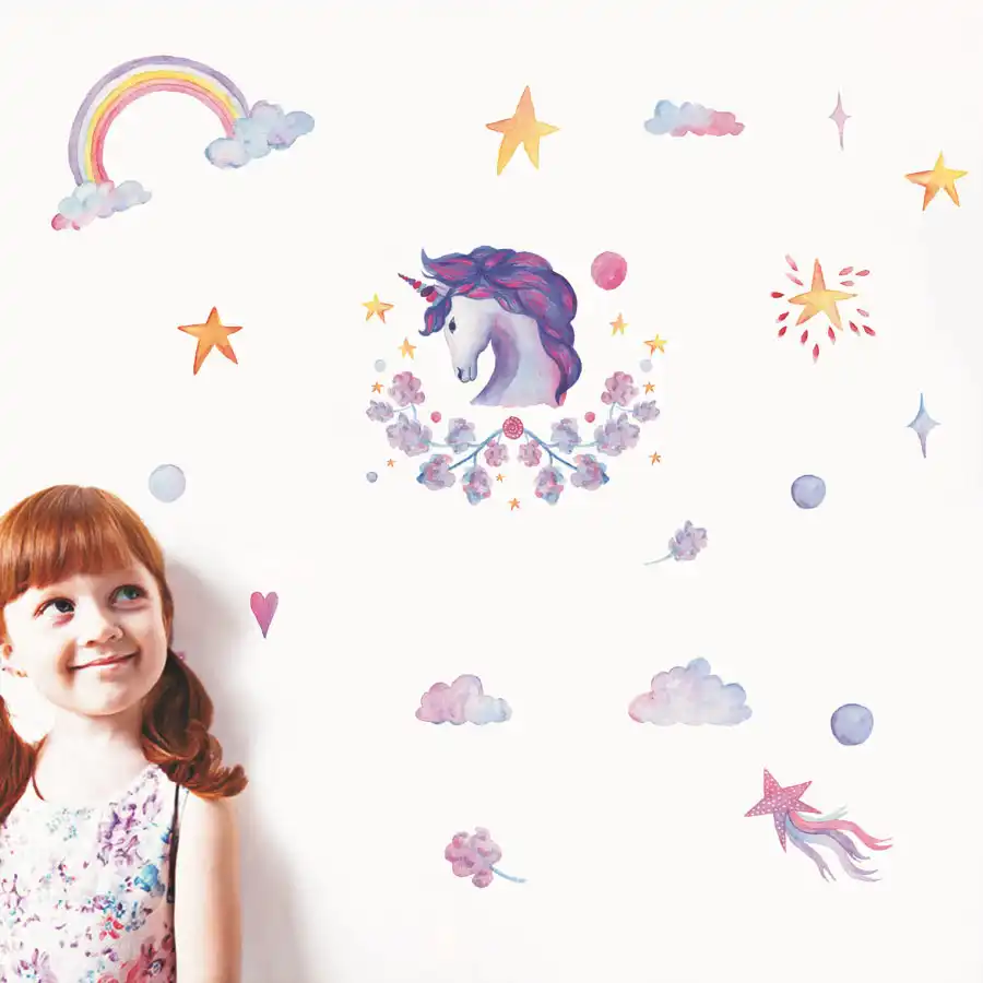 Multicolor Crayon Style Rainbow Cloud Star Unicornio Wallpaper Sticker Wall Sticker Translucent Wall Stickers Wall