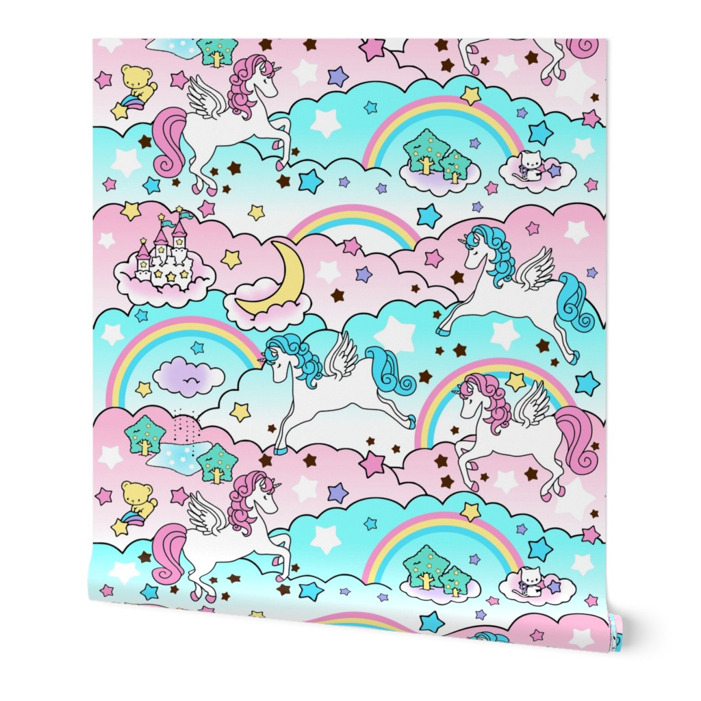 Roostery Wallpaper Roll Pegasus Unicorns Rainbows Castles Moon