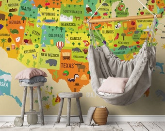 Map Of Us Wallpaper Wall Mural Self Adhesive Contemporary